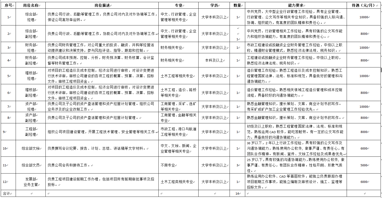 (一)北海市路港建設(shè)投資開發(fā)有限公司2022年擬招聘人才崗位信息表